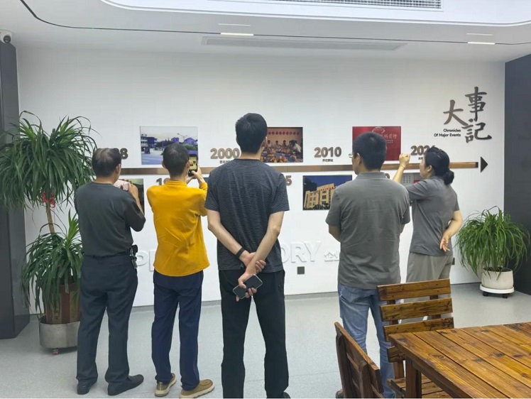 その後、ゼネラルマネージャーのYuは、クライアントがグループの本部を訪問するように導きました。この「クロニクル」は、私たちの設立以来、あらゆる重要な瞬間を記録しています。Yuゼネラルマネージャーが本部の文化展示会に入ったように、彼は古い写真とテキストを壁に向け、ゆっくりと会社の物語についてゆっくりと伝え始めました。 「1988年、私たちは小さなワークショップから始めました。当時、「品質に基づいて企業を構築し、人々を誠実に扱う」という原則を設定しました。現在、37年が経過しており、この元の意図は変わりませんでした。顧客が視聴するのをやめたとき、Yu氏は「私たちは製品に「ハードウェア」を生産するだけではなく、「サービス」を提供する必要があります。この壁に書かれているものと同じように、「顧客のニーズを追求に変える」ことは、すべての従業員の心に刻まれた原則です」と付け加えました。