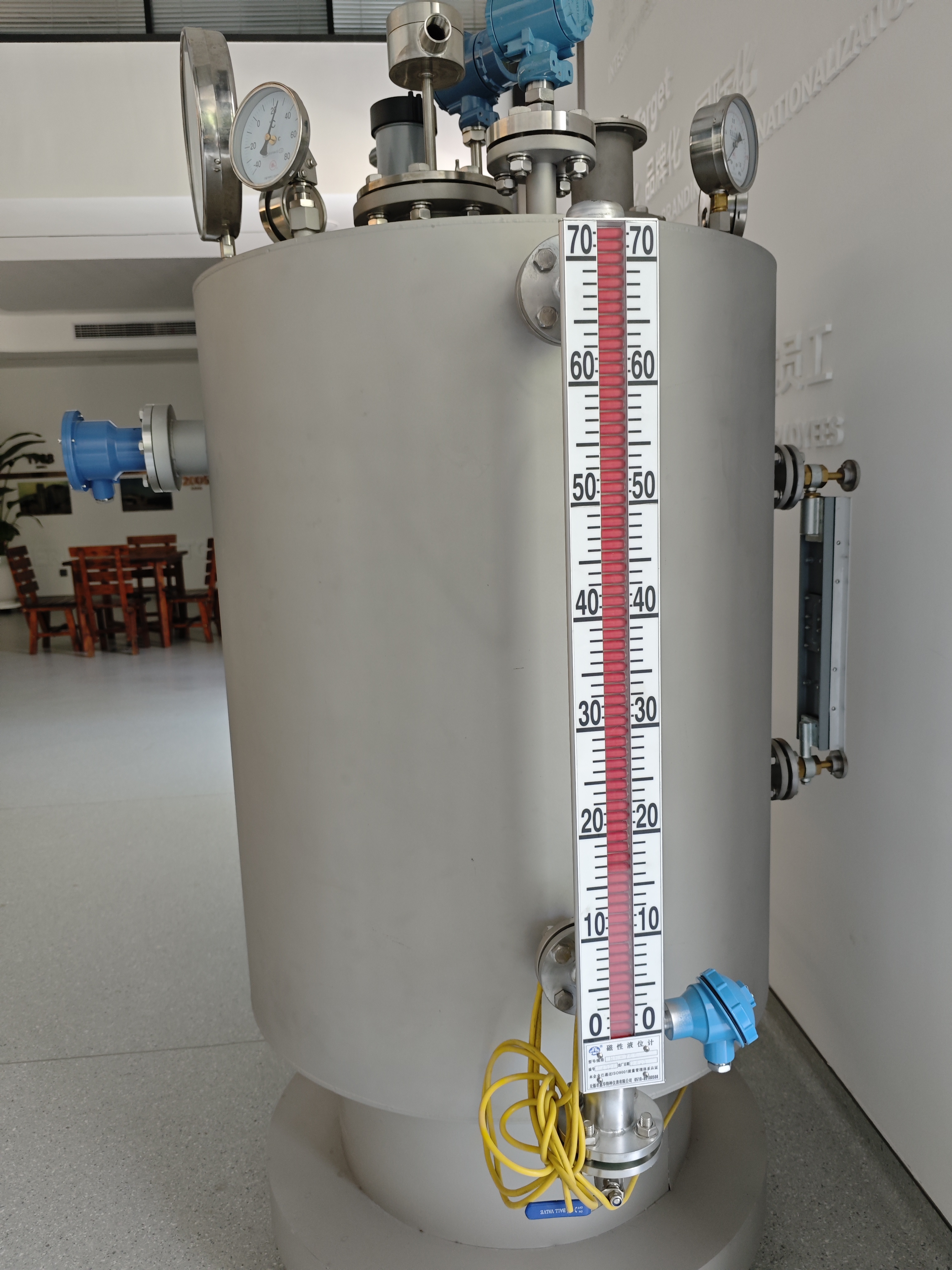 石油精製や化学品の製造プロセスにおいて、さまざまな貯蔵タンクや反応容器内の液面レベルを監視することは非常に重要です。磁気フラップ式液面計は、原油、石油精製製品、化学原料などの液面高さをリアルタイムに表示します。磁気スイッチと組み合わせることで、高液位および低液位の警報機能を実現し、タンクのオーバーフローや空っぽなどの事故を効果的に防止できます。たとえば、大規模な製油所の貯蔵タンクエリアでは、自動制御システムと組み合わせて磁気フラップレベルゲージを使用することで、遠隔監視と自動液体補充が実現され、生産の安全性と管理効率が大幅に向上します。