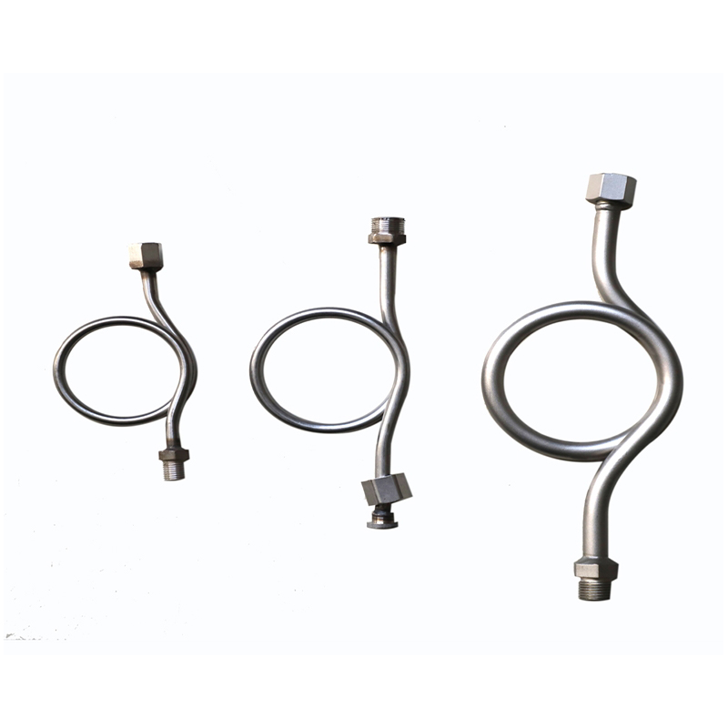 圧力計肘またはバッファーチューブとも呼ばれる圧力計コンデンサーは、圧力ゲージを機器またはパイプラインに接続するために使用されるコンポーネントです。圧力ゲージのスプリングチューブに対する測定培地の瞬間的な影響を緩衝するように設計されており、同時に、測定された培地の温度を下げることができます。圧力計を保護するためのデバイスです。