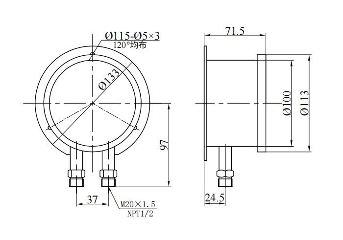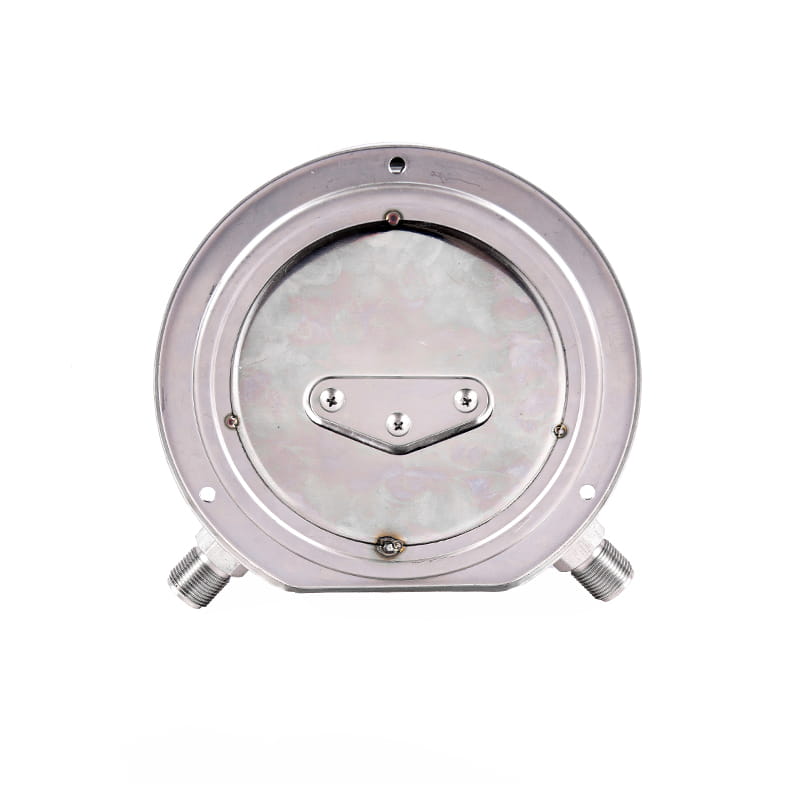 この機器は、二重のブルドンチューブ構造を採用しています。つまり、2つのブルドンチューブが「I」ブラケットの両側の対称位置に設置されています。 「I」ブラケットの上部と下部のセクションは、それぞれ可動端と固定端であり、中央はスプリングピースで接続されています。2つのブルドンチューブは平行状態にあり、それぞれコンジットとの高電圧ジョイントと低電圧ジョイントに接続されています。ギアトランスミッションメカニズム。