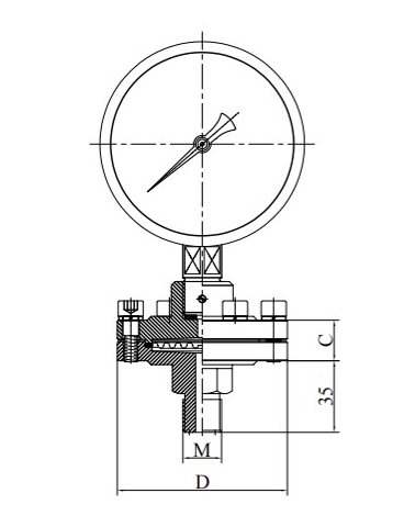 この機器は間接的な測定です。分離ダイアフラム変形測定された培地の圧力下で、シーリング液が加圧され、圧力が圧力になります。