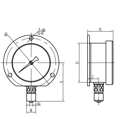 | YG150 -ⅰ | 117 | 51 | 16.5 | φ 150 | / | / | φ 6 | M20 × 1.5 |