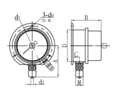 | yxch150- ⅳ | 115 | 79 | 45(30) | φ 150 | φ 6 | φ 165 | φ 6 | M20 × 1.5 |